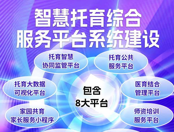 智慧托育服务平台涵盖了大数据可视化平台、托育智慧协同监管平台、托育公共服务平台、托育机构备案信息系统、托育机构运营管理系统、家园共育平台(老师端、家长端)、智慧物联&智能硬件对接和系统综合基础服务模块等功能系统。通过这个综合性服务平台,不仅可以实现托育服务的数字化和信息化管理,还能够满足家长对托育机构的公示信息查询和科学育儿知识的学习等需求,也为托育机构的运营管理、家园共育和备案工作提供便利。